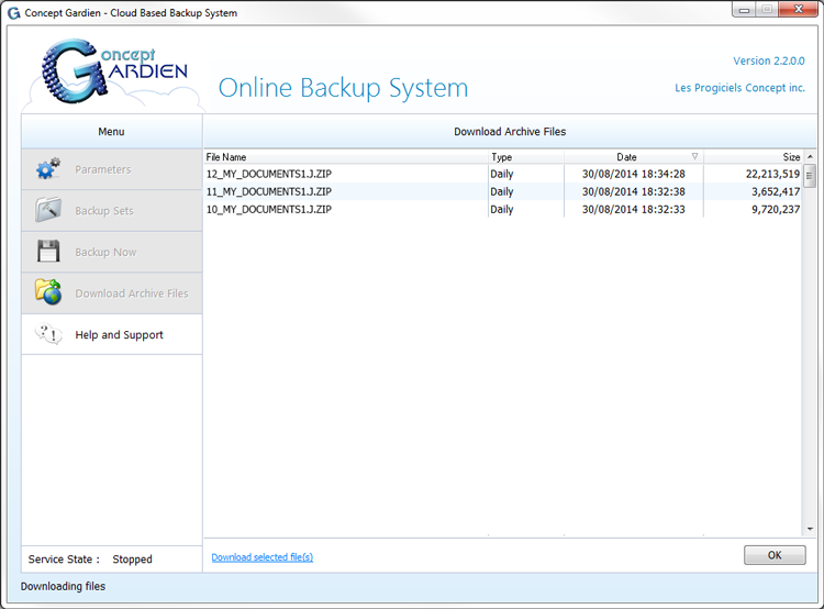 The list of available archives is presented. It is possible to select one or more files using the mouse. To select multiple files, use the following combinations : Shift + Click to select a range of files or Ctrl + Click to select individual files.